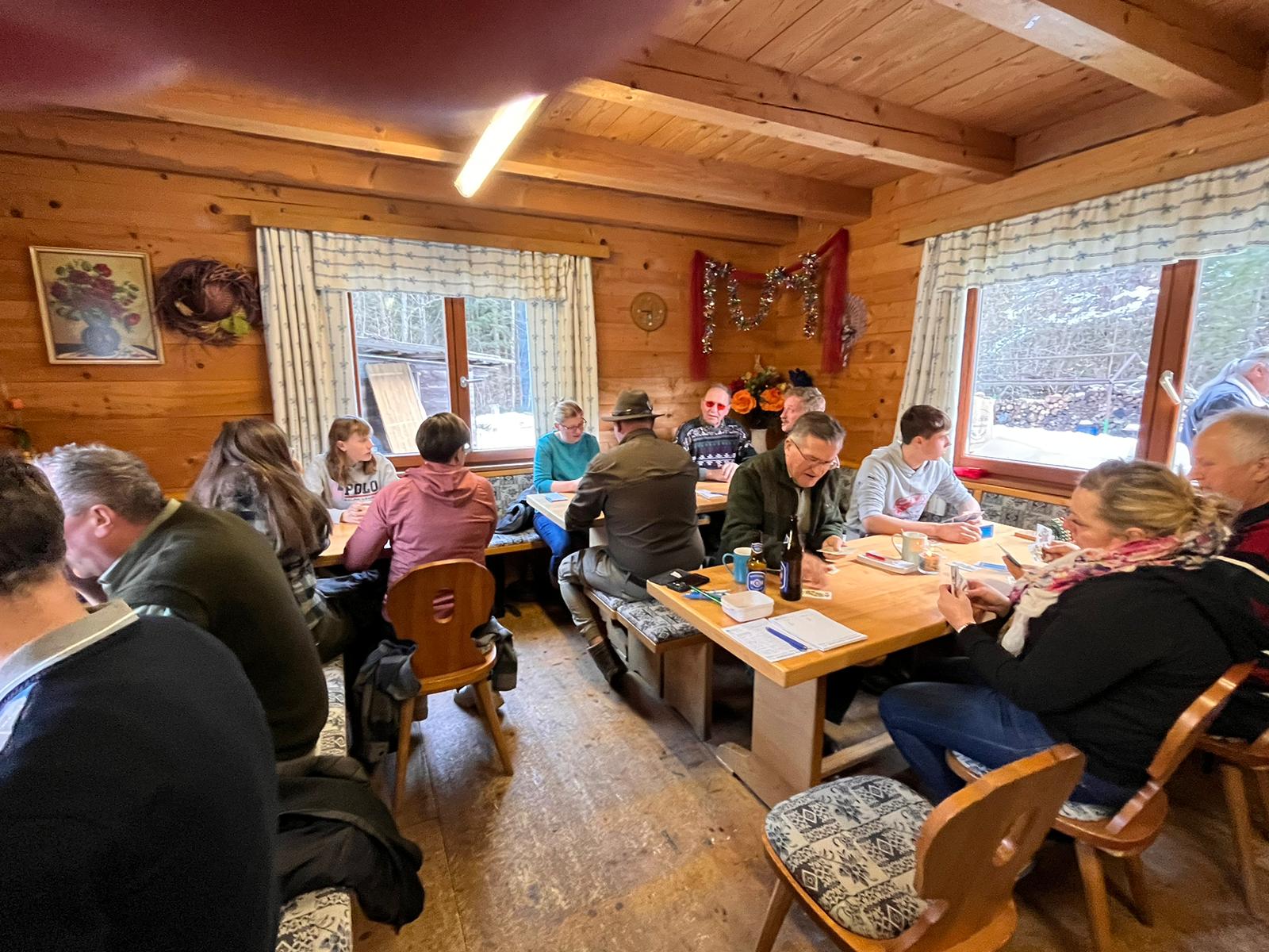 Zum zweiten Mal fand heuer wieder ein Kräftemessen der Jäger und der Bauern aus dem Übelbachtal statt. Das freundschaftliche Zusammentreffen des Steir. Jagdschutzvereins und des Bauerbundes musste aber leider witterungsbedingt kurzfirstig von der Eisbahn in die Eishütte verschoben werden. Statt mit dem Eisstock, wurde die stärkere Mannschaft durch ein Schnapsturnier ermittelt. Im Anschluss konnten noch einige Stunden in geselliger Runde verbracht werden, sowie auch die ein oder andere Weisheit ausgetasucht werden. Die heuer besiegten Bauern sprachen bereits nach dem Turnier die Forderung zur Revanche aus und so dürfen wir uns auf eine Wiederholung im kommenden Jahr freuen! Weidmannsheil aus Übelbach! Philipp Krois