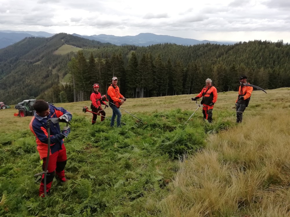 Mitglieder des Zweigvereines Frohleiten beteiligten sich am 18. Juli an dieser vom Steirischen Almwirtschaftsverein organisierten Aktion um wertvolle Futter- bzw. Äsungsflächen zu erhalten. Ohne diese regelmäßige Almpflege würden wertvolle Almflächen verwildern und verwalden. Natur verpflichtet!